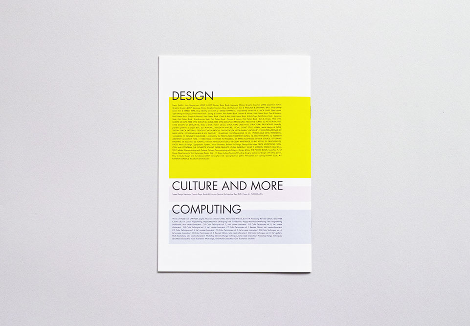 表紙はグラフィック、Web、映像を3色のラインで表現しています。