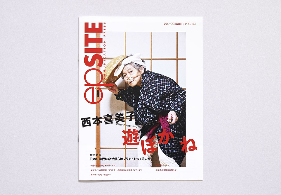 エプサイトイメージングギャラリーの会報誌。表紙は企画展の西本喜美子さんの展覧会「遊ぼかね」の写真です。