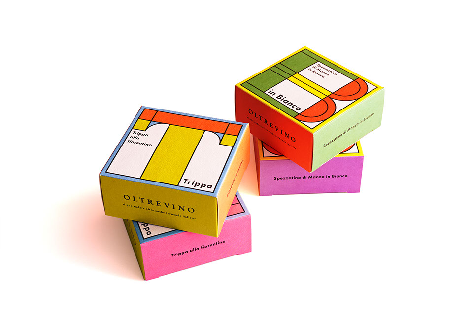 DEAN & DELUCAとOLTREVINOとのコラボレーションにて生まれた「フィレンツェ風トリッパと白インゲンの煮込み」「牛肉と香味野菜のインビアンコ」の缶詰のパッケージデザインです。トリッパ、インビアンコの頭文字をモチーフにギルトとしてもよろこばれるようなカラフルで楽しいデザインにしています。