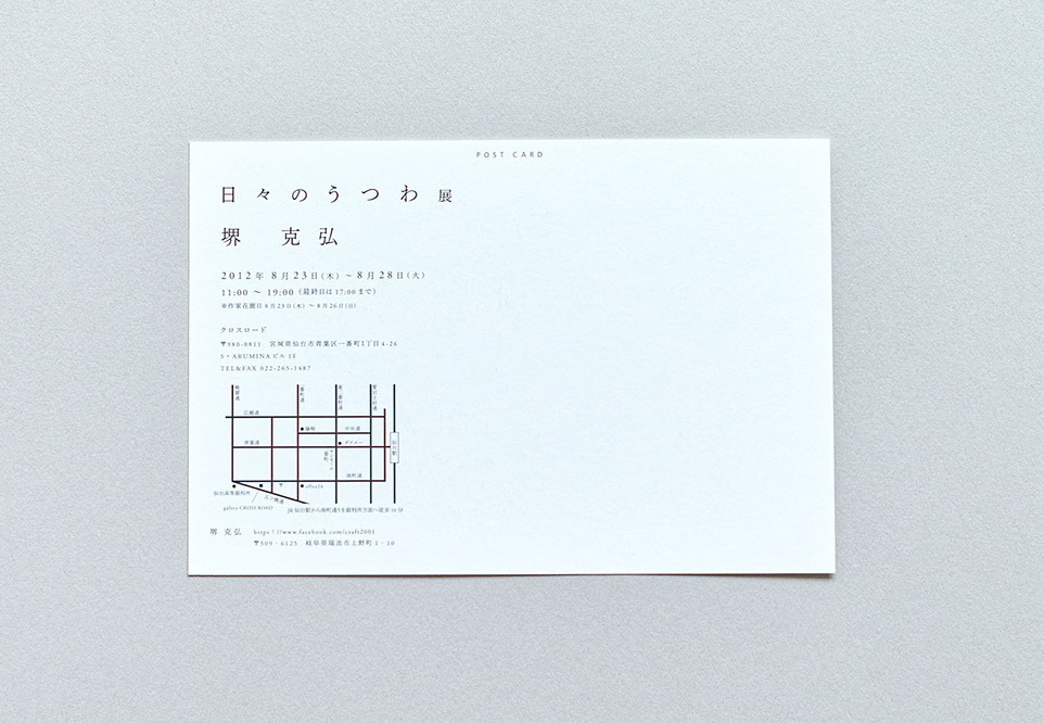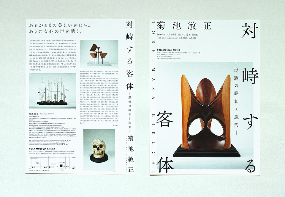 ポーラミュージアムアネックスで開催された菊池敏正さんの展示「対峙する客体」のフライヤーデザイン。