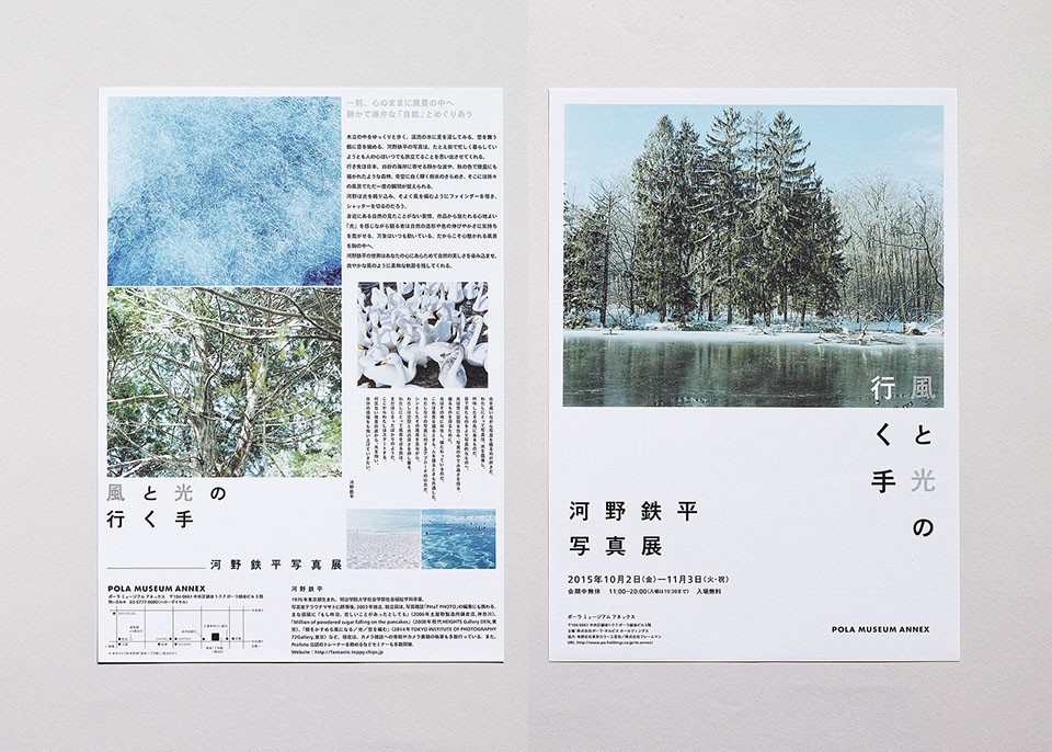 ポーラミュージアムアネックスで開催された河野鉄平さんの写真展のフライヤーデザイン。