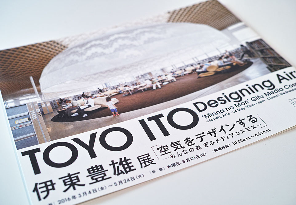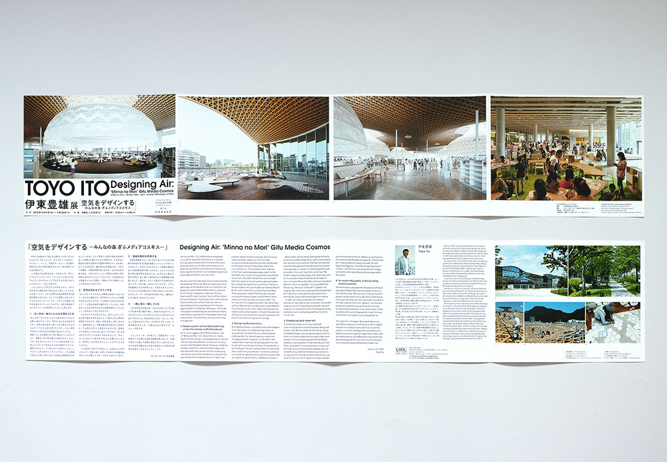 LIXILギャラリーで開催されている『クリエイションの未来展』。第7回は伊藤豊雄展「空気をデザインする ーみんなの森ぎふメディアコスモスー」リーフレットは日本語と英語のバイリンガルになっています。