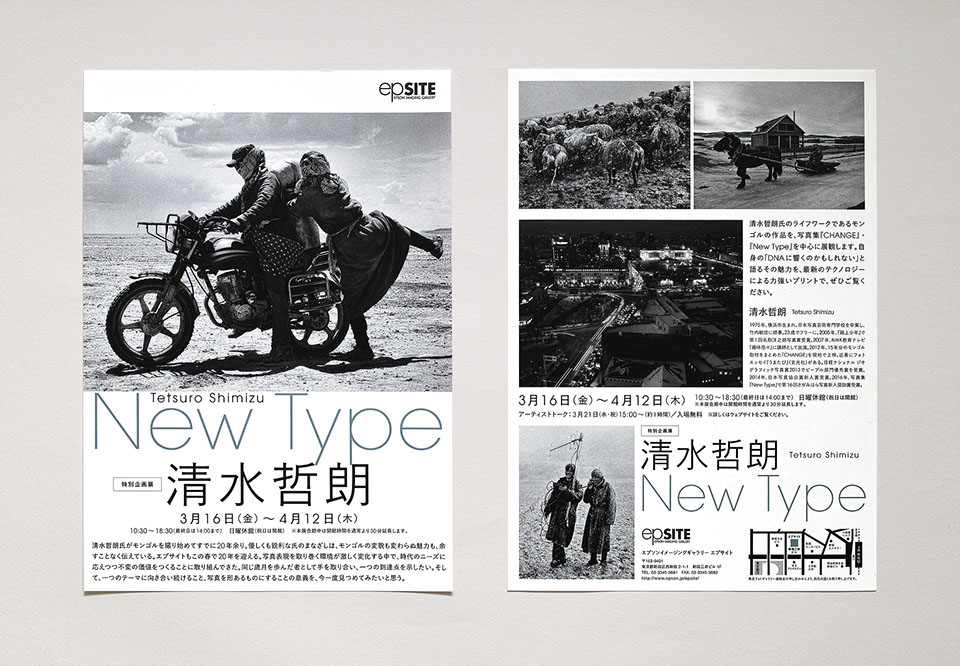 エプサイトギャラリーで開催される清水展「New Type」のフライヤーデザインです。