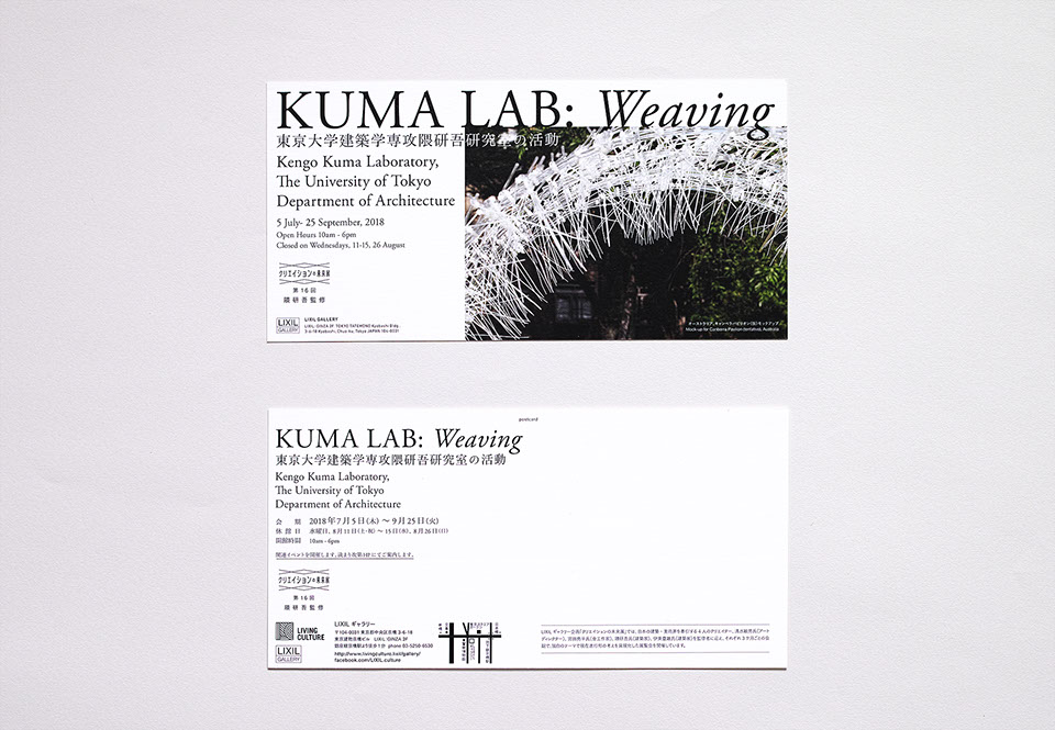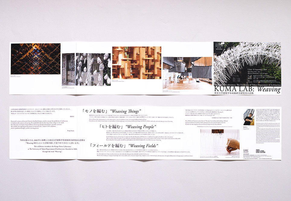 LIXILギャラリーで開催されている『クリエイションの未来展』。第8回は隈研吾監修の『新しい建築教育の現場』展。リーフレットは日本語と英語のバイリンガルになっています。